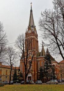 Biserica Evanghelică-Luterană „Biserica Roșie” (1905–1906) – remarcată pentru fațadele roșii și vitraliile originale din Budapesta; orga Wegenstein și mobilierul artistic întregesc eleganța interioară.