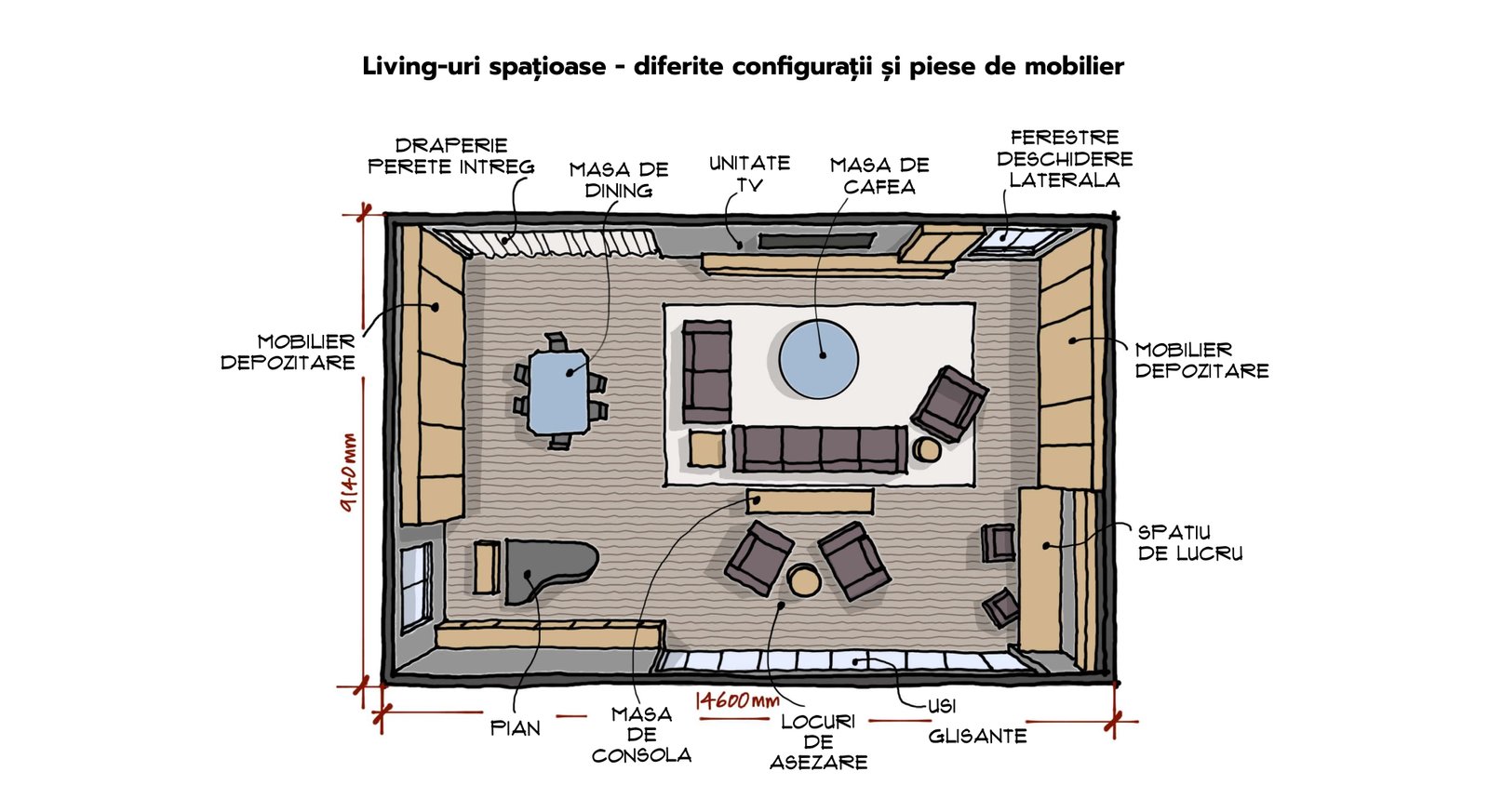 Living-uri Spațioase – Diferite Configurații