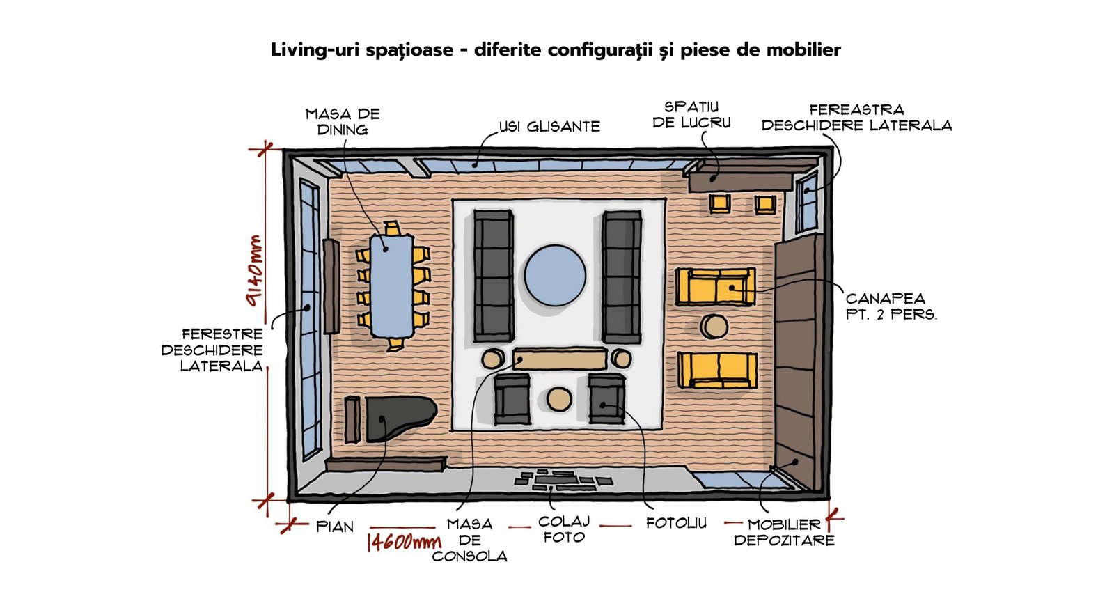3 Living-uri spatioase – diferite configuratii si piese de mobilier
