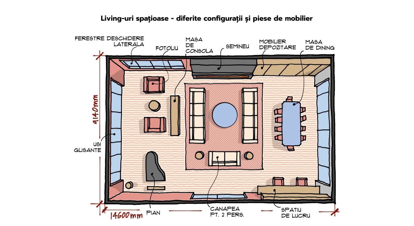 4 Living-uri spatioase – diferite configuratii si piese de mobilier