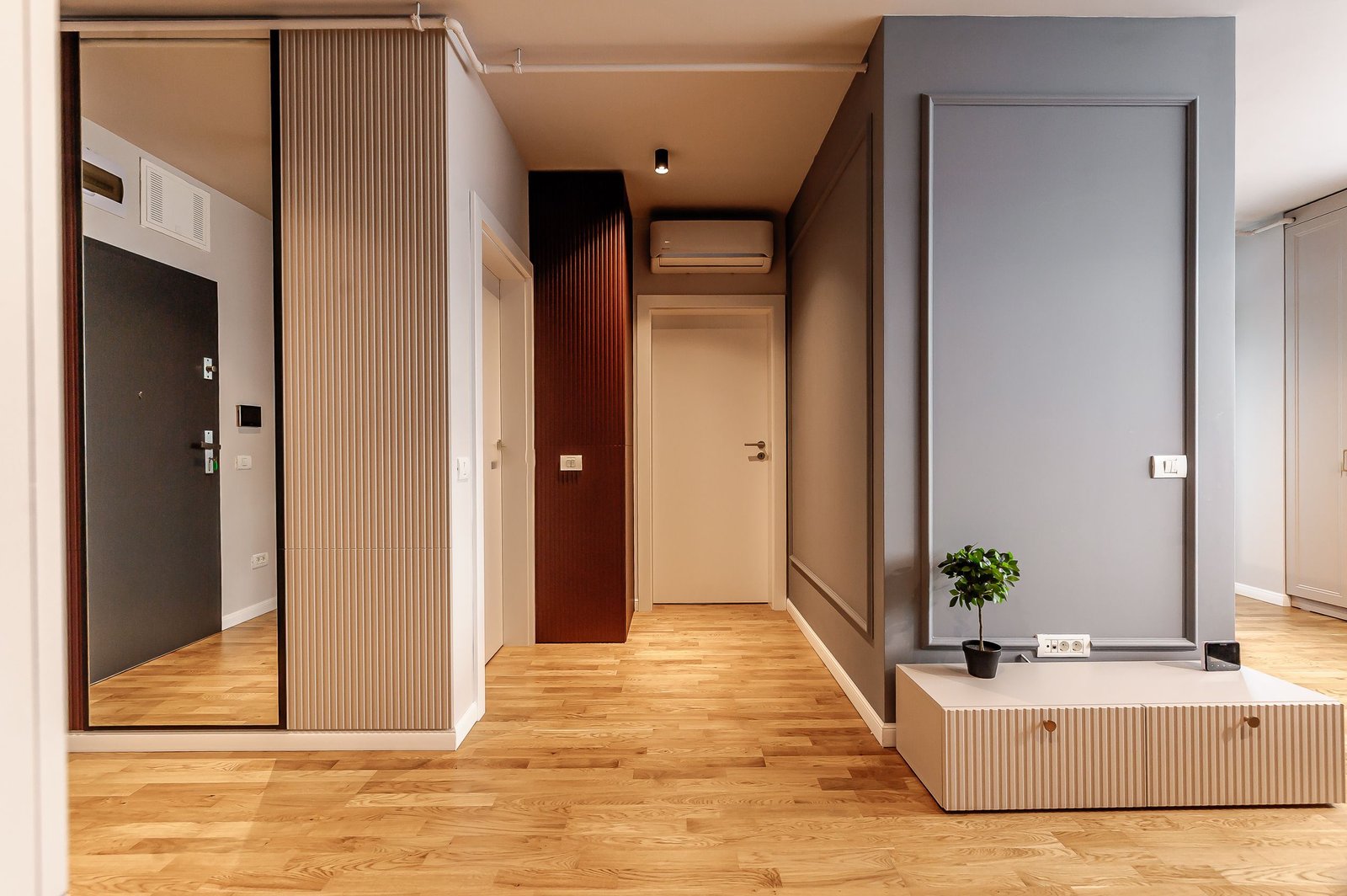 Vă prezint un partament finisat modern, cu 45 mp utili, compartimentat astfel: living cu bucătărie open‑space, dormitor, baie, balcon și un loc de parcare inclus. Este un spațiu eficient energetic, cu consum redus și confort termic optim, ideal pentru un trai sustenabil.