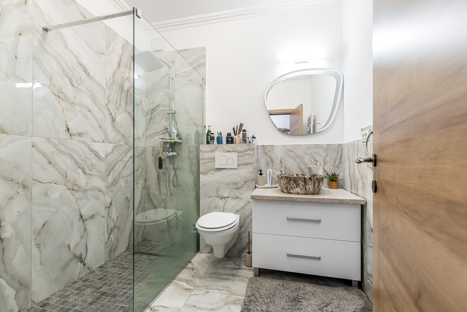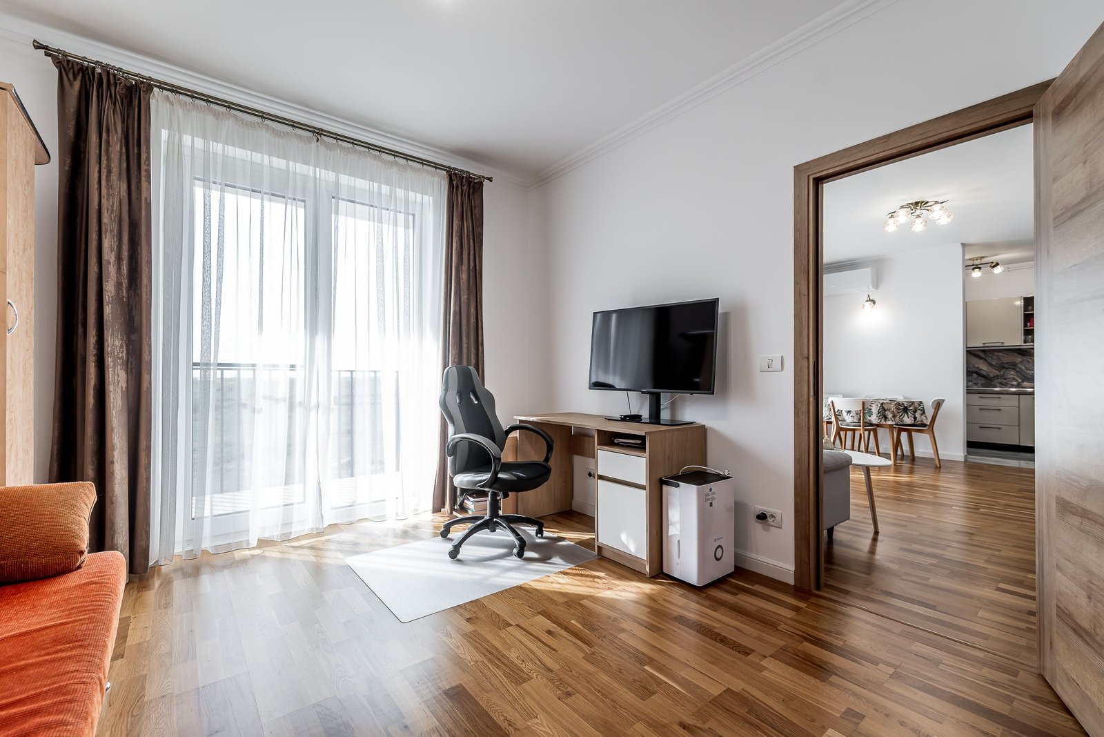 Apartamentul este compartimentat eficient și cuprinde hol de intrare, living spațios, bucătărie, 2 dormitoare și 2 băi, fiind excelent pentru o familie. Beneficiază de finisaje premium atent alese, parchet din lemn masiv, încălzire în pardoseală și centrală proprie pe gaz, oferind un nivel ridicat de confort.